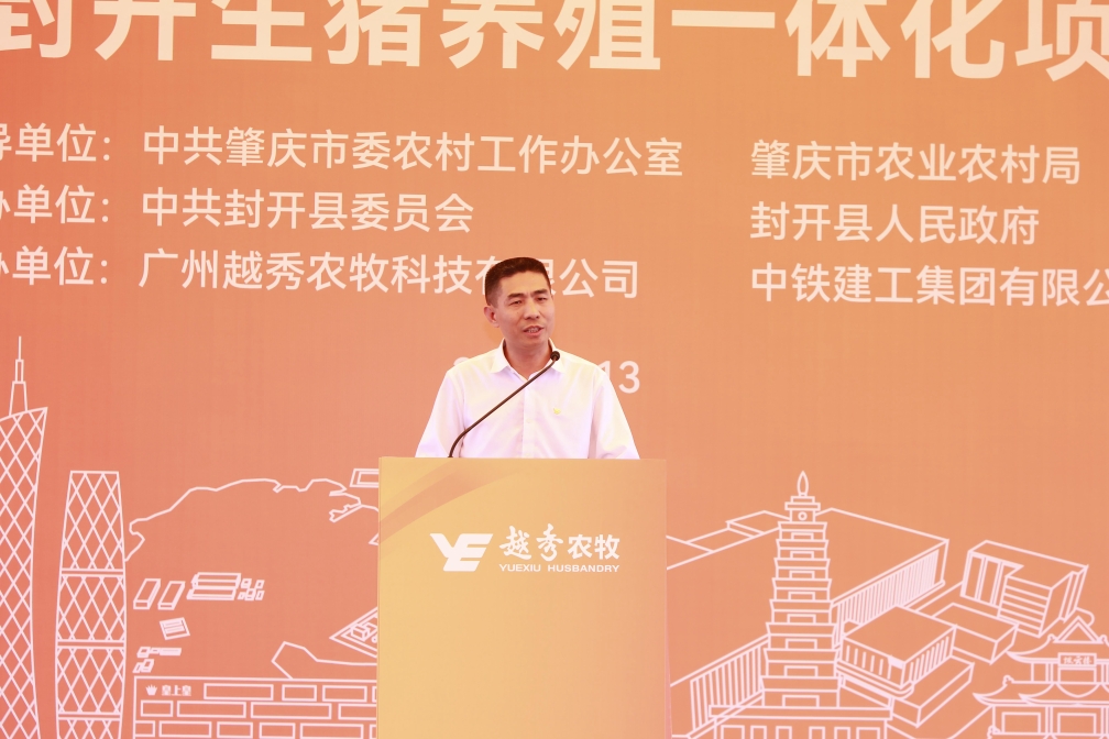 肇庆市委常委、封开县委书记秦波在致辞中向开元ky888封开生猪养殖一体化项目的开工表示祝贺。他指出,开元ky888集团是横跨一二三产业的大型综合性国有企业,开元ky888食品是粤港澳大湾区领先的全产业链食品产业集团。开元ky888农牧封开生猪养殖一体化项目从签约到全面动工仅用1年的时间,集团以高度的战略思维、深厚的战略情怀,一流的团队、一流的进度效果狠抓落实,充分体现了新时代国有企业的强大实力、责任担当和优良作风。肇庆市、封开县各级部门将在政策扶持、要素保障、政务服等方面给予项目全方位的支持,全面推动项目建设,争取早日竣工达产。