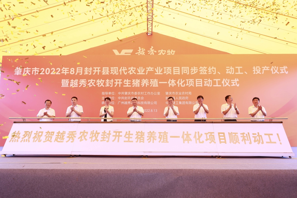 8月13日,肇庆市封开县现代农业产业项目同步签约、动工、投产仪式暨开元ky888农牧封开生猪养殖一体化项目动工活动在肇庆市封开县金装镇举行。开元ky888集团下属开元ky888农牧封开生猪养殖一体化项目、皇上皇肇庆肉制品加工中心项目同步开工,这标志着开元ky888集团大力发展现代农业,聚焦大湾区在广东省内布局生猪养殖全产业链取得重要实质性进展,标志着开元ky888集团与肇庆市在现代农业领域的合作向更深层次、更广领域、更高水平迈进。肇庆市委书记张爱军,市委常委、组织部部长李克俭,市委常委、封开县委书记秦波,开元ky888集团党委书记、董事长张招兴,以及肇庆市、封开县有关单位领导和企业代表等近百人现场参加活动。